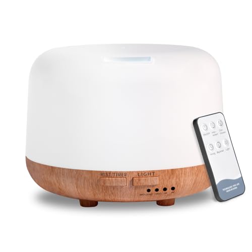 Diffusor för eterisk olja, fjärrkontroll, aromaterapi, justerbart dimläge, automatisk avstängning om vattnet tar slut, 7 LED-ljusfärger, för sovrum, kontor, resor, yoga, spa, bebis, 300 ml