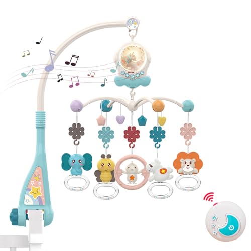 Aolso Baby Bed Toy, Baby Bed Mobile, Baby Sleep Aid Music Toy med söta djur, Baby Bed Mobile med musik och lampor, projektor och fjärrkontroll (Star Projection Blue)