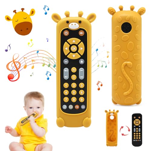 Baby TV-fjärrkontroll leksak för baby från 6 12 18 månader, babyleksak från 1 2 år, musikleksak ljudleksak (B-med musik) utan transparent silikon-fjärrkontrollfodral