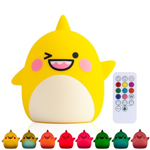 Kadoing® Nattlampa Bebishaj för Barn - Stor och Uppladdningsbar - med Tryckfunktion och Fjärrkontroll - Nattljus för Bebis - Leksak och Present till Barn - Barnlampa LED