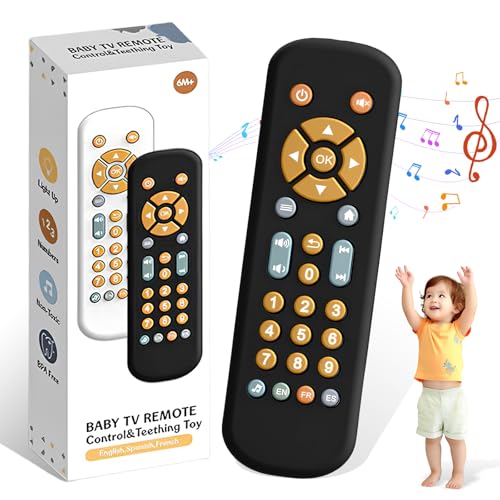 JoyJoyful Tv-fjärrkontroll leksak för barn, baby, 1 år, 3 språk, pedagogisk leksak, flicka, 1 år, present till franska/spanska/engelska, musikleksaker, tidiga inlärningsleksaker Einstein (svart)