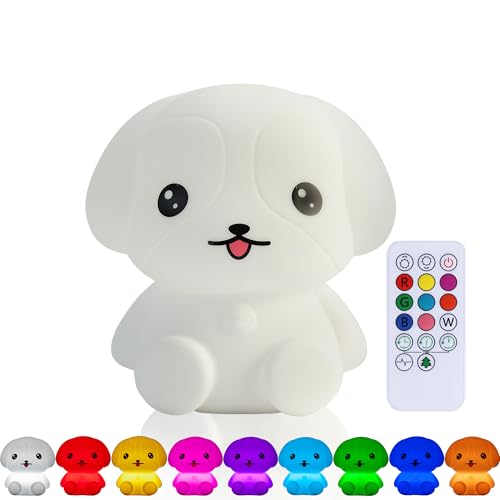One Fire nattlampa barn, Kawaii 16 färger nattlampa baby, fjärrkontroll amningsljus dimbar sänglampa barn, 1 200 mAh batteri lampa & timing bärbart babyrum, silikon hund leksak gåva