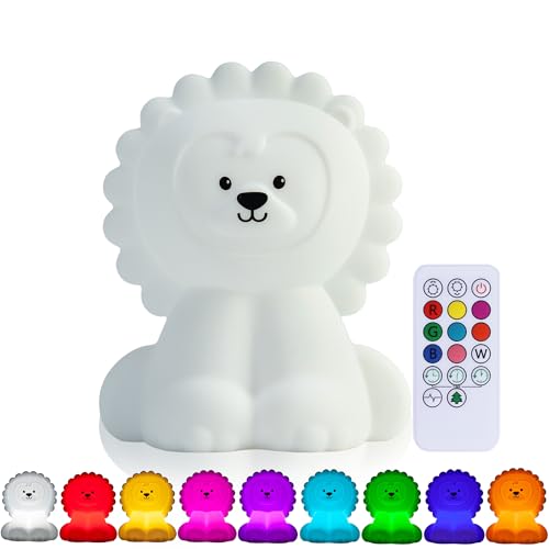 Kadoing® Nattlampa Lejon för Barn - Stor och Uppladdningsbar - med Tryckfunktion och Fjärrkontroll - Nattljus för Bebis - Leksak och Present till Barn - Barnlampa LED