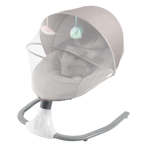 Hlieeosfcn Elektrisk babygunga, elektrisk babygungbräda med fjärrkontroll och appanslutning, babygungbräda med 5 vibrationsamplituder och timer, avtagbart myggnät och dold, för baby 0–6 månader