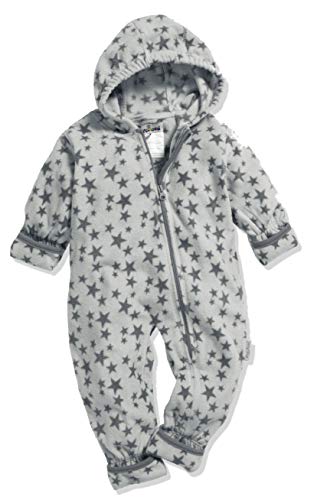 Playshoes Baby fleece-overall, andningsbar unisex jumpsuit för pojkar och flickor med lång dragkedja och huva, färgad kontrasterande, Grå stjärnor, 86