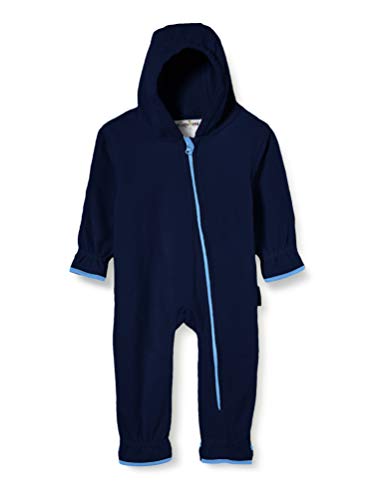 Playshoes Baby fleece-overall, andningsbar unisex jumpsuit för pojkar och flickor med lång dragkedja och huva, färgad kontrasterande, Mörkblå, 68