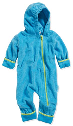 Playshoes Baby fleece-overall, andningsbar unisex jumpsuit för pojkar och flickor med lång dragkedja och huva, färgad kontrasterande, Aquablau, 80