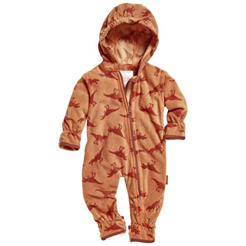 Playshoes Baby fleece-overall, andningsbar unisex jumpsuit för pojkar och flickor med lång dragkedja och huva, färgad kontrasterande, Dinos, 74