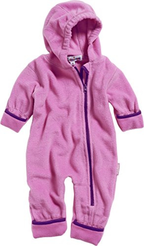 Playshoes Baby fleece-overall, andningsbar unisex jumpsuit för pojkar och flickor med lång dragkedja och huva, färgad kontrasterande, ROSA, 74