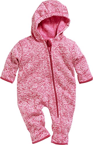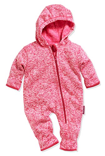 Playshoes Baby fleece-overall, andningsbar unisex jumpsuit för pojkar och flickor med lång dragkedja och huva, färgad kontrasterande, rosa stickad fleece, 80