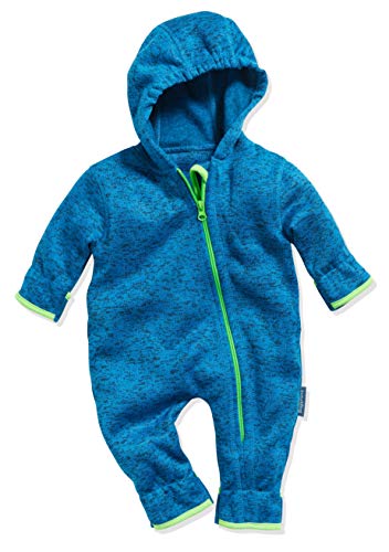 Playshoes Baby fleece-overall, andningsbar unisex jumpsuit för pojkar och flickor med lång dragkedja och huva, färgad kontrasterande, blå stickad fleece, 80