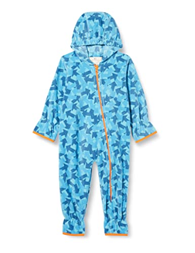Playshoes Baby fleece-overall, andningsbar unisex jumpsuit för pojkar och flickor med lång dragkedja och huva, färgad kontrasterande, Aquablau, 68