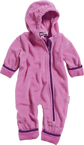 Playshoes Baby fleece-overall, andningsbar unisex jumpsuit för pojkar och flickor med lång dragkedja och huva, färgad kontrasterande, ROSA, 68