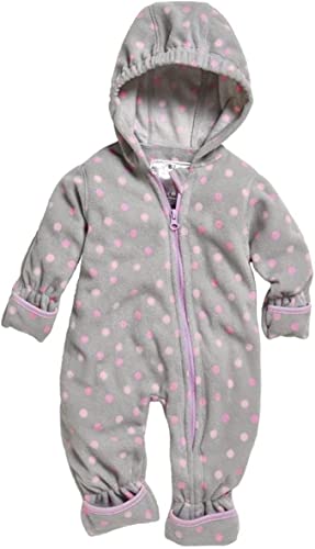 Playshoes Baby fleece-overall, andningsbar unisex jumpsuit för pojkar och flickor med lång dragkedja och huva, färgad kontrasterande, Punkter, 68