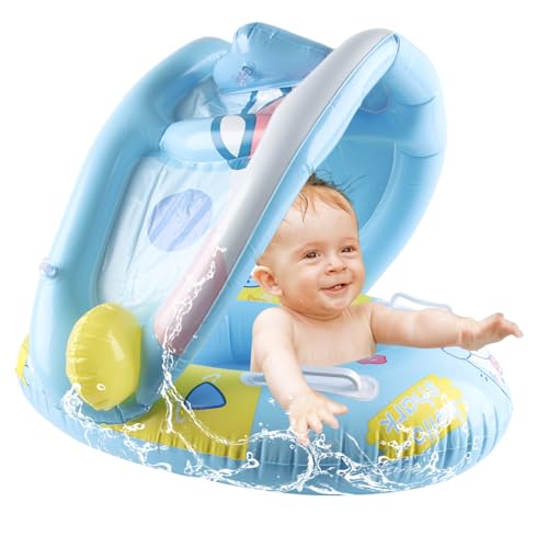 ACTOYS Baby Parasoll Float, Baby Float 6 7 8 9 10 11 12 Månader, 1 2 3 År, Baby Boias med solskydd, för pool och strand (hajar)