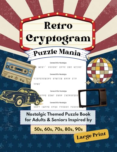 Retro Cryptogram Puzzle Mania: Baby Boomers' Nostalgic Brain Games for Adults and Seniors Inspired by 50s, 60s, 70s, 80s and 90s