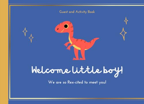 Baby Shower Guest and Activity Book for Boy:: Baby Dinosaur Guestbook + Prediction Games and photo Pages INCLUDED! Guest Sign-In and more | Blue and Gold