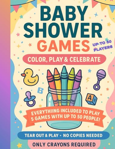 BABY SHOWER GAMES: COLOR, PLAY & CELEBRATE: 5 Fun Baby Shower Games. Ready to Play, no copies needed. , up to 50 players