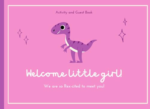 Baby Shower Guest and Activity Book for Girl:: Baby Dinosaur Guestbook + Prediction Games and Photo pages INCLUDED! Guest Sign-in and more! | Pink, purple