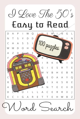I Love the 50'S: Word Searches with Easy to Read Print about 1950's , Baby Boomers, Brain Games, and More | 6x9 inches, 200pages | 100 puzzles … Gift for Vacations, Holidays, and Free Time