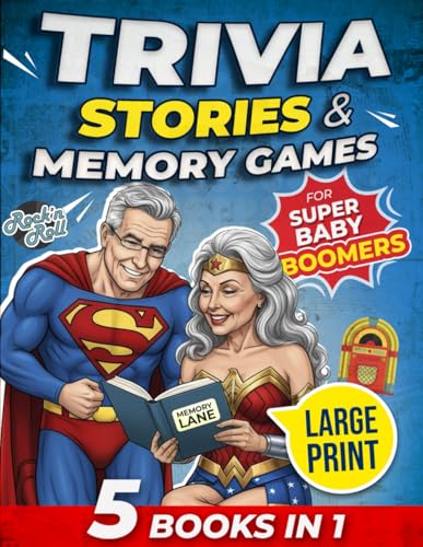 Trivia, Stories & Memory Games for Super Baby Boomers: 5 Books in 1 Puzzle Activity Book with Brain Exercises, Guided Journals, and Family Games – A Perfect Retirement Gift for Men and Women