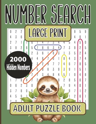 Number Search Puzzle Book for Adults: Fun and Relaxing Large Print Number Puzzle Book for Adults and Seniors | Includes Number Searches and License Plate Puzzles | Brain Games with Cute Baby Sloths