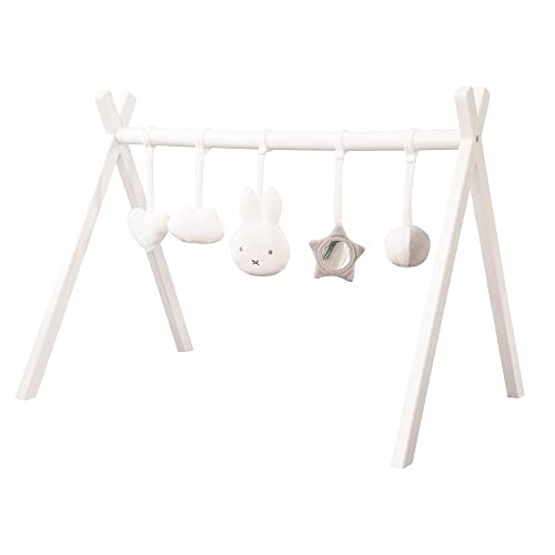 roba Baby Gym av trä enligt Montessori - Babygym med hängande miffy® - Aktivitetscenter & Leksaksställ från 3 månader - Vitt