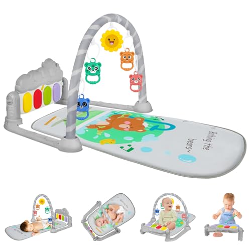 AOMIG Baby piano gymmatta, Baby Gym Spela Mats med musik och ljus, Lekmatta med löstagbara aktivitetsleksaker, tidig utvecklingsaktivitet Baby Lekmatta Leksakspresent för bebisar