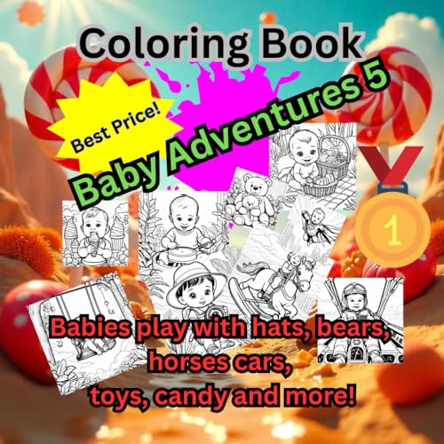 Coloring Book, Baby Adventures 5: Happy and adorable babies in diferents moments! play with bears, Babies play with hats, bears, cars, toys, candy and more!