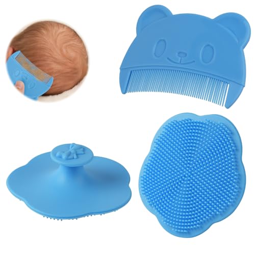 Aolso Baby hårkam, 2 st babyhår kam-set, silikonkam småbarn kam för nyfödda och småbarn, schampokam fosterhår kam, perfekt babylista present (blå)