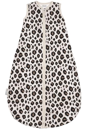 Meyco baby leopard sovsäck (tillverkad av 100% bomull, lätt och luftigt, andas, hudvänligt material, lättskött, maskintvättbar, lämplig för torktumling, storlek: 110 cm), Sand Melange