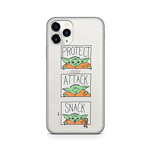 ERT GROUP mobiltelefonfodral för Apple Iphone 11 PRO MAX originalt och officiellt licensierat Star Wars mönster Baby Yoda 009 Vit anpassad till formen på mobiltelefonen, gedeeltelijk transparant