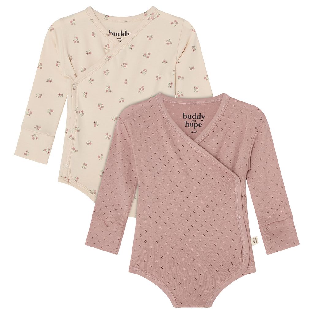 Buddy & Hope Max Blommönster Baby Body Pink 2-pack 62/68 cm Rosa Blommor 62/68 cm unisex