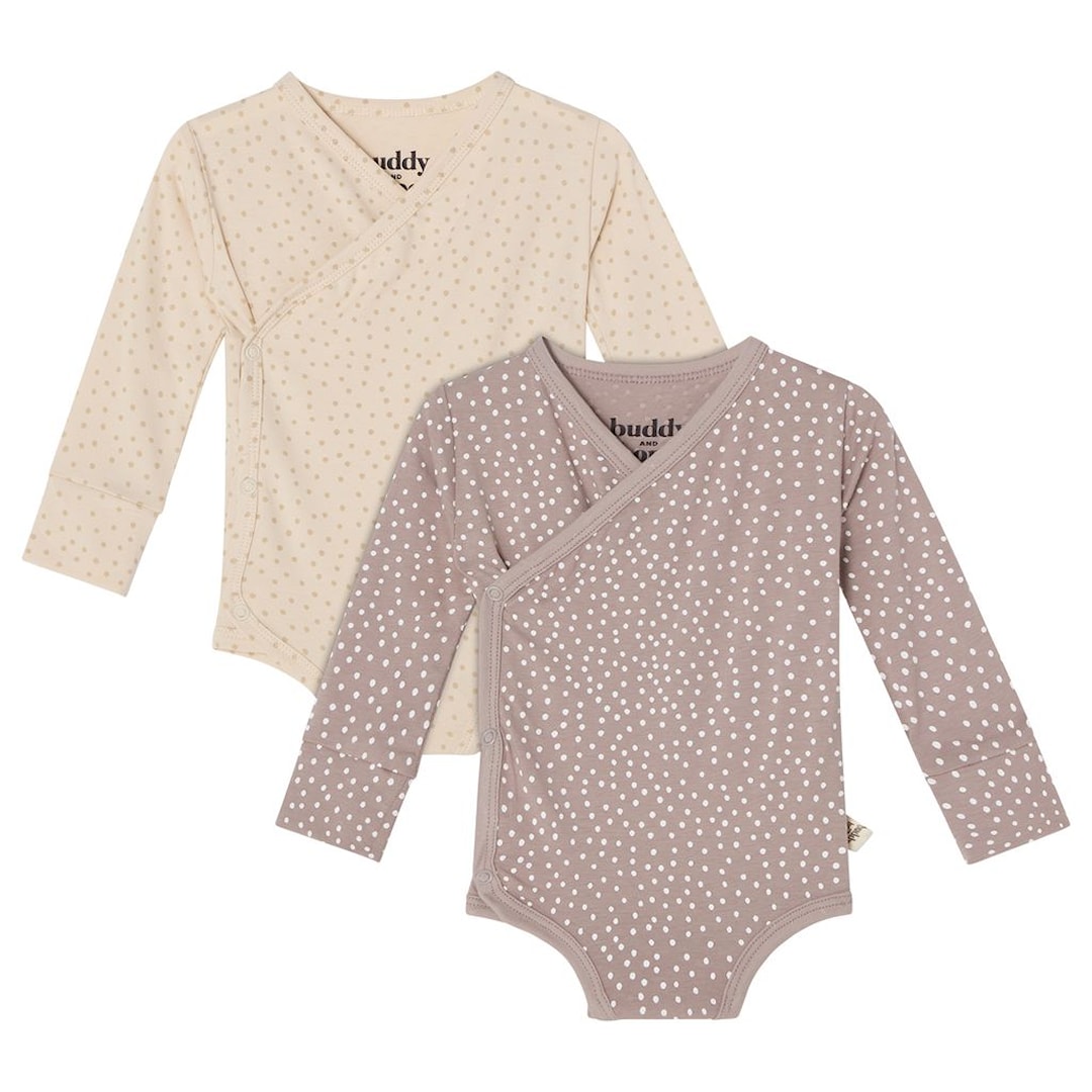 Buddy & Hope Max Beige/Taupe Prickig 2-pack Baby Body 74/80 cm Beige Prickar 74/80 cm unisex