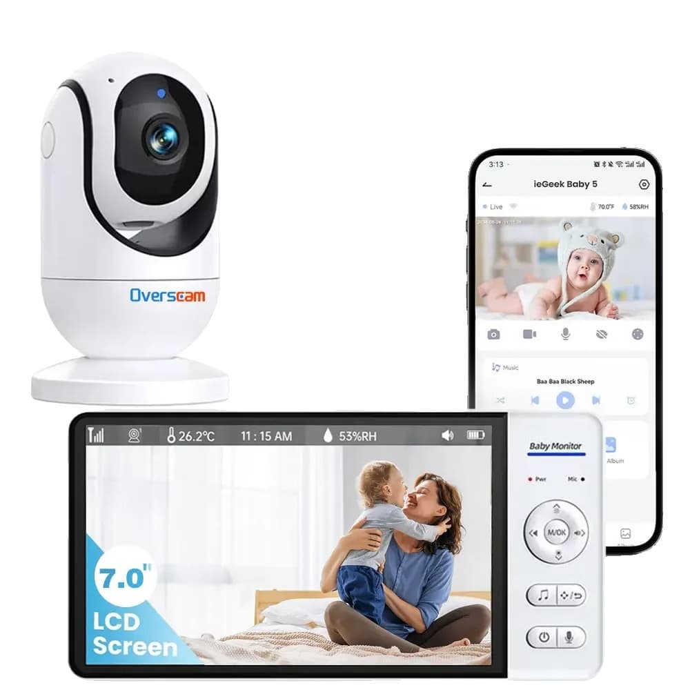COCOCAM 2K 4MP AI 5" Baby Monitor med kamera 2,4G/5GHZ WiFi, Täckande ansikte/Sovande på mage-detektion, Smart Time Album, AI-detektion, Auto Track, Cry Detection, IR Night Vision, AES-kryptering