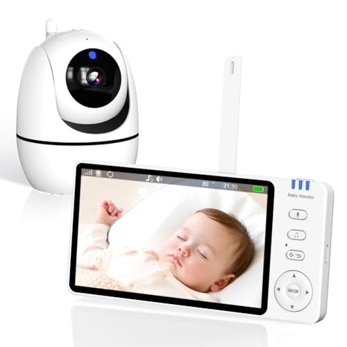 Zawaer babyvakt, babyvakt med kamera 5'' 720P HD,video babymonitor kamera och audio baby monitor med Vox funktion, PTZ 330°/135°, 3×zoom, 2,4 GHz intercom funktion, mörkerseende,temperaturövervakning