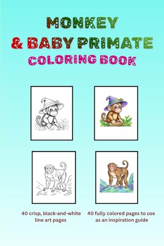 Monkey & Baby Primate Coloring Book: 80 Cute Apes, Happy Chimps, and Jungle Scenes | Includes 40 Black & White Images for Coloring & 40 Full-Color Pages for Inspiration and Fun