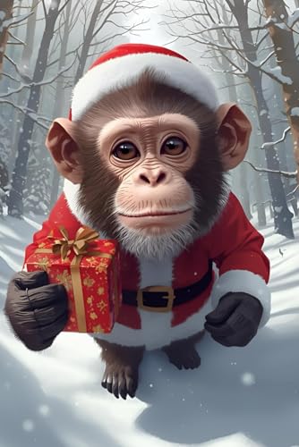 Cute Baby Monkey Santa Christmas Notebook: Adorable Festive Monkey Journal: Sweet Little Monkey in Santa Suit Holding a Gift Notebook for Animal Lovers, Christmas Lists & Winter Journaling