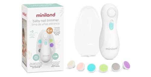 Elektrisk babynagelfil Miniland Baby Nail Trimmer elektrisk nagelklippare för spädbarn och vuxna för nyfödda naglar och tår och småbarn inklusive 6 huvuden