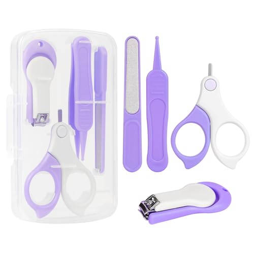 Vicloon Baby nagelkit, 5-i-1 baby nagelvårdsset, baby nagelvårdsverktyg, babymanikyrset inkluderar nagelklippare, sax, öronpetare, nagelfil och pincett för nyfödda spädbarn småbarn