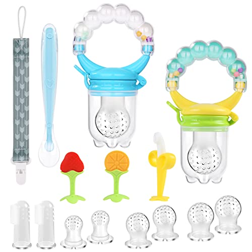 Vicloon Baby Food Feeder, 2 st Barnmat fruktmatare + 6 BPA-fria silikon nappar, Baby Napp för frukt, grönsaker, napp bitring för flicka pojke födelsepresenter