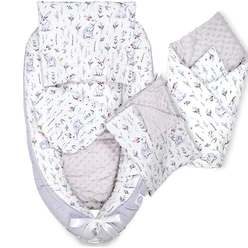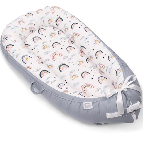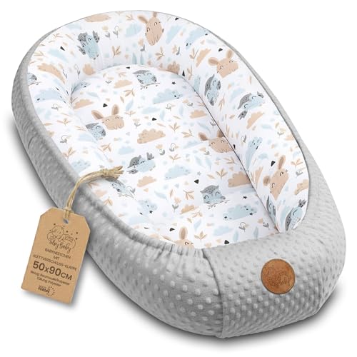 Bellochi Baby Nest för nyfödda XXL | Baby solstol bo | 100 % bomull | 120 x 65 - med skyddskanter | 0-9 m | Habarigani