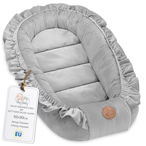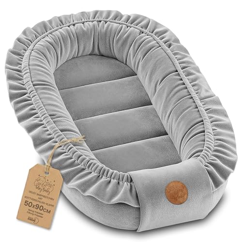 Nest för baby - babynest nyfödd Minky babynest för spjälsäng mångsidigt bärbart babynest kramvänligt tillbehör för spjälsäng varm vinterkokong Velvet Grå