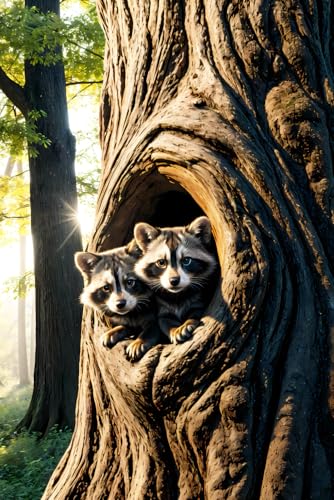 Two Baby Raccoons in Their Cozy Nest Journal: a LINED notebook for self-expression