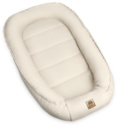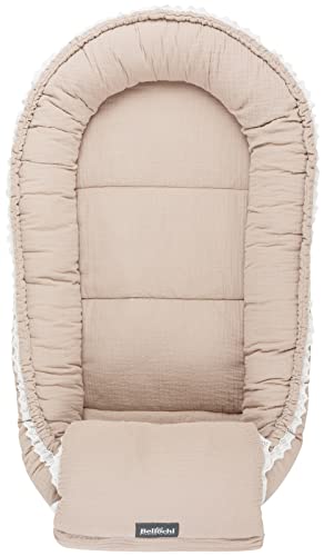 Bellochi Baby Nest för nyfödda | Baby solstol bo | 100% bomull | 90 x 60 x 12 cm - med skyddskanter | 0-9 m | vävstol | Cuddly Muslin Beige