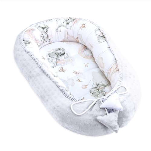 Nest för baby - babynest nyfödd Minky babynest för spjälsäng mångsidigt bärbart babynest kramvänligt tillbehör för spjälsäng varm vinterkokong Elefant ljusgrå