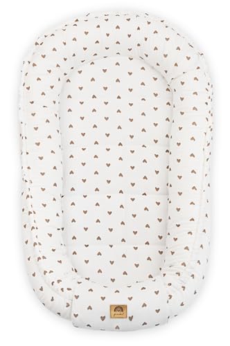 PIMKO Babybo, babybo för spädbarn, gosigt bo babykokong för spädbarn och nyfödda, bo 60 x 90 cm, 100 % bomull, muslin, hjärtan vit