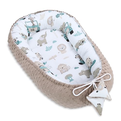 Bellochi Baby Nest för nyfödda XXL | Baby solstol bo | 100% bomull | 120 x 65 - med skyddskanter | 0-12 m | Jambo