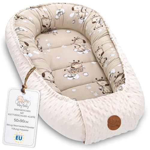 PIMKO Babybo, babybo för spädbarn, gosigt bo på 2-sidig babykokong för spädbarn och nyfödda, babybo, 100 % bomull, bo lämplig för hem, 55 x 90 cm (beige med flik)