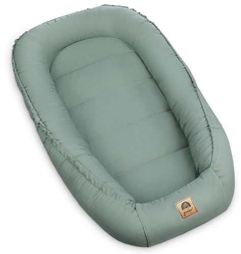 PIMKO Babybo, babybo för spädbarn, gosigt bo på 2-sidig babykokong för spädbarn och nyfödda, babybo, 100 % bomull, bo lämplig för hem, 55 x 90 cm (pistacio med flik)